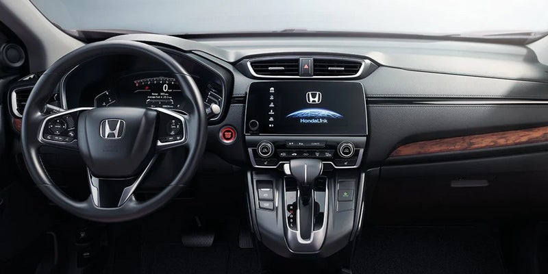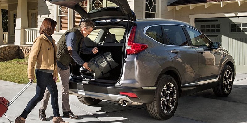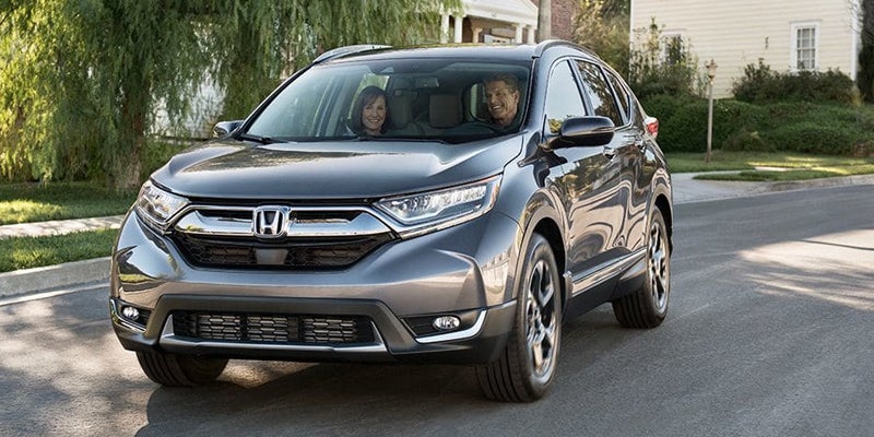 With its bold front fascia, athletic profile, and distinctive front and rear lighting, the Honda CR-V has an imposing road presence. It's offered in LX, EX, EX-L, and Touring trim levels. The LX features 17-inch alloy wheels, LED daytime running lights, power mirrors, a roofline spoiler, and LED taillights.