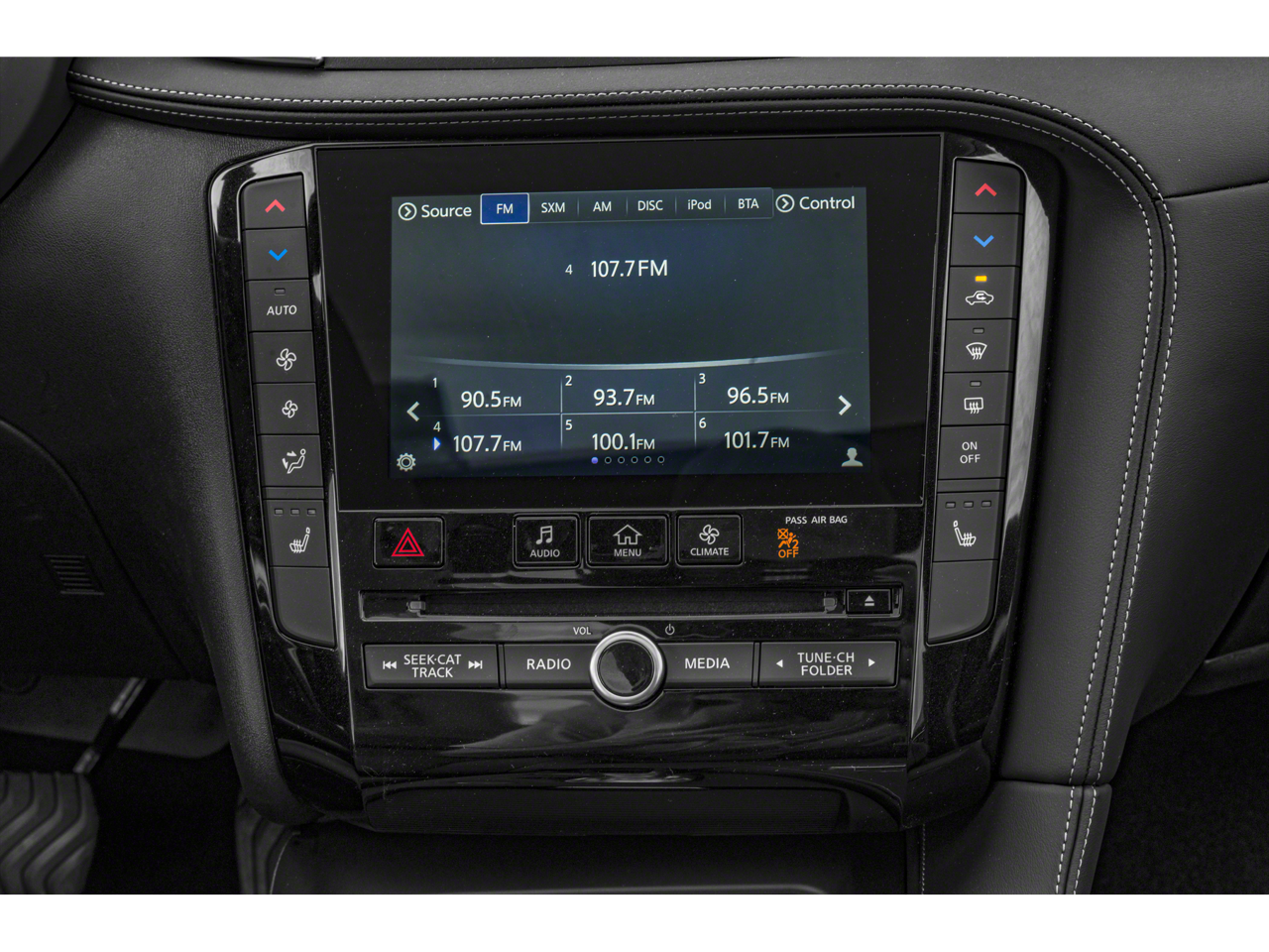 - Radio: AM/FM/CD Audio System -inc: 6-speaker w/4 USBs, INFINITI InTouch dual display system w/upper 8" and lower 7" VGA LCD touch screens, HD Radio, SiriusXM satellite radio w/90-day complimentary trial, INFINITI voice recognition and SiriusXM Travel Link w/4-year complimentary trial access to weather, fuel prices, stocks, sports and movie times