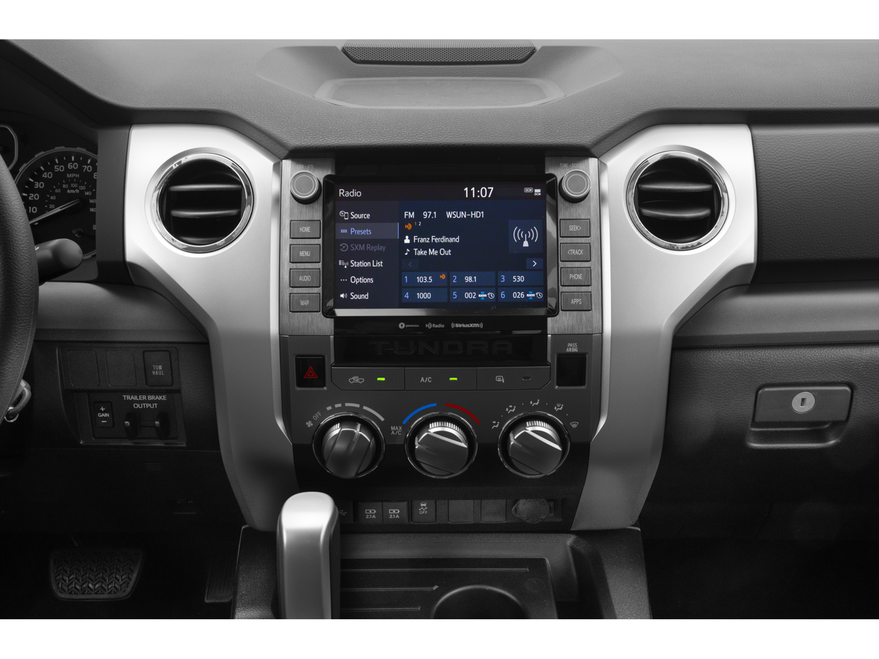 - Radio: Entune Premium Audio AM/FM w/HD Radio & CD -inc: integrated navigation system, MP3/WMA playback capability, AM/FM cache radio, 9 speakers, 7" high-resolution touch-screen w/split-screen display, auxiliary audio jack, USB media port, HD Radio predictive traffic and Doppler weather overlay, Bluetooth® hands-free phone capability w/advanced voice recognition, phone book access and music streaming and Siri Eyes Free, Entune App Suite, Destination Search, iHeartRadio, Yelp and Slacker Radio, SIRIUSXM Satellite Radio, complimentary SiriusXM All Access 90-day trial subscription