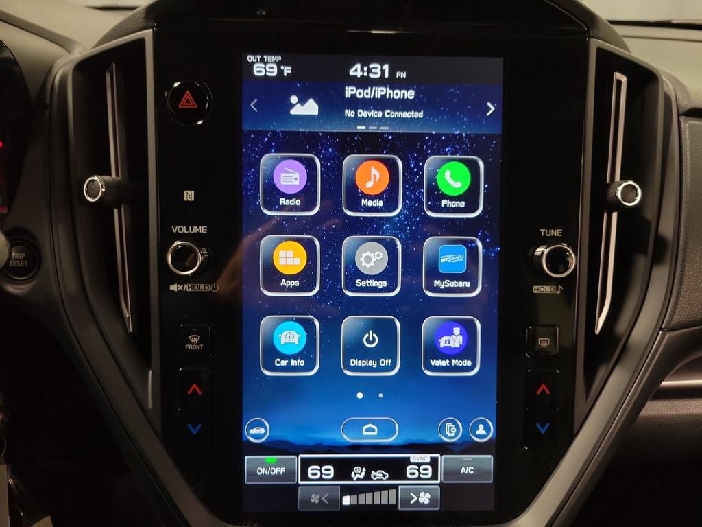 - Radio: Subaru STARLINK 11.6" Multimedia Plus Sys -inc: AM/FM stereo HD Radio, multi-touch gesture high resolution display screen, voice activated controls, Bluetooth® audio streaming connectivity, Bluetooth® hands-free phone connectivity, Bluetooth® hands-free SMS text messaging connectivity (applicable w/compatible cell phone), Near Field Communication (NFC), iPod control capability, rear-vision camera display, SiriusXM All Access radio (4 months free trial/subscription required after), SiriusXM w/360L (4 months free platinum trial included/subscription required after), SiriusXM Travel Link (4 months free trial/subscription required after), smartphone integration: Android Auto w/full screen view and wireless connection, Apple CarPlay w/full screen view and wireless connection, STARLINK cloud applications, USB and Over The Air (OTA) audio system update, 6 speakers and roof mounted audio, satellite and connected services antenna