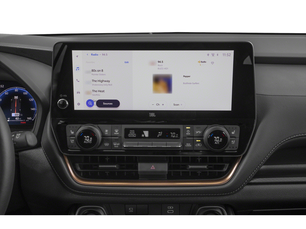 - Radio: 12.3" Toyota Audio Multimedia w/JBL Premium -inc: 11 speakers, voice activated commands, dual Bluetooth® phone connectivity, wireless Apple CarPlay and Android Auto compatibility, HD Radio, USB and SiriusXM w/3-month platinum plan trial subscription